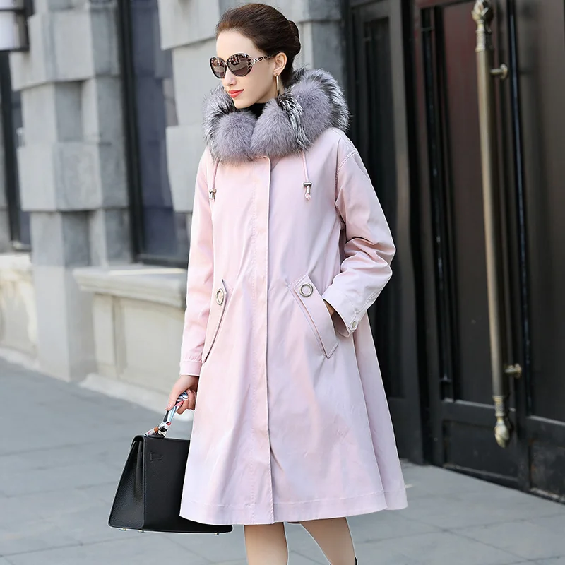 Product Name: AYUNSUE 2020 Echten Pelzmantel Weibliche Natürliche Kaninchen Pelz Liner Parka Winter Jacke Frauen Fuchs Waschbären Pelz Kragen Lange Jacken MY3890