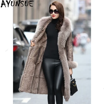 Special Offer AYUNSUE Doppel Konfrontiert Echtpelz Mantel 2020 Winter Mantel Frauen Echt Leder Jacke Frauen Fuchs Pelz Kragen Warme Kaninchen Pelz Mäntel MY4235 Discount 50% Today!