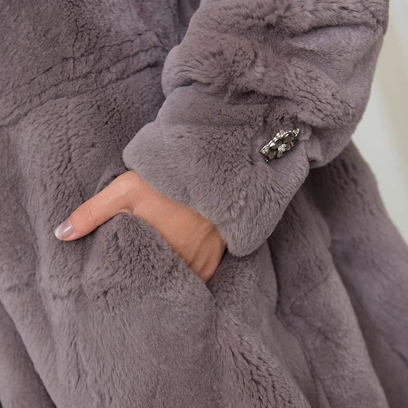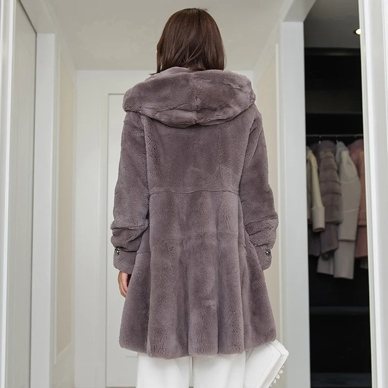 Special Offer Lose Fit Mit Kapuze Natürliche Rex Kaninchen Pelz Mäntel Oberbekleidung Frauen EINE Linie Kristall Stein Big Saum Echtpelz Jacken 2018 Winter Discount 0% Today!