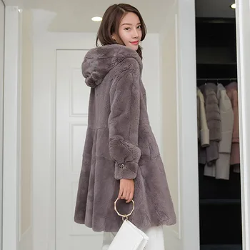 Product Name: Lose Fit Mit Kapuze Natürliche Rex Kaninchen Pelz Mäntel Oberbekleidung Frauen EINE Linie Kristall Stein Big Saum Echtpelz Jacken 2018 Winter