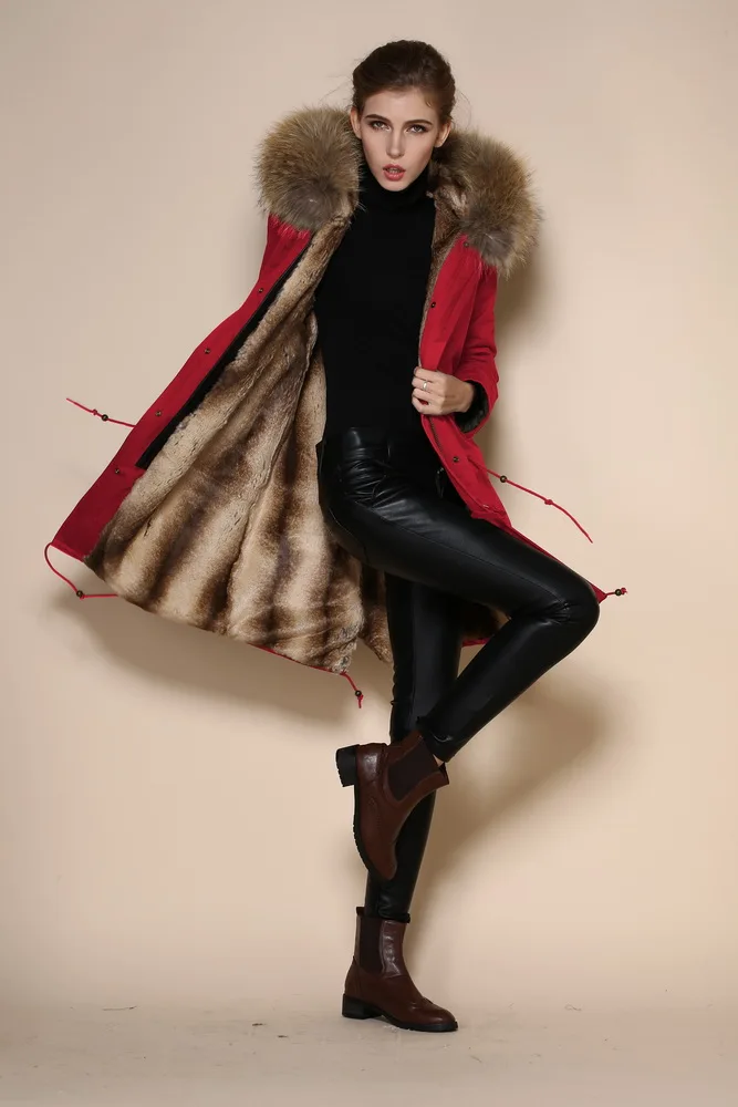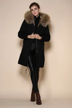 Product Name: Italien Lange Stil Winter Warme Oberbekleidung Mäntel Mr Mrs Fell Gefälschte Kaninchen Fell Parka Große Pelz Kragen Mantel