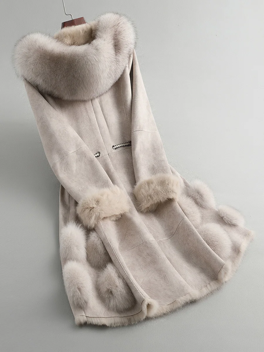 Product Name: Fell Natürliche Kaninchen Mantel Weibliche Vintage Lange Echt Fuchs Pelz Mit Kapuze Lammfell Jacke Frauen Koreanische Doppel Konfrontiert Pelz Tops Hiver 08004