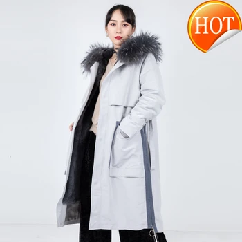 Product Name: Pelzmantel Echt Winter Jacke Frauen Natürliche Kaninchen Pelz Liner Parka Frauen Kleidung 2020 Waschbären Pelz Kragen Langen Mantel 80525G708 YY562