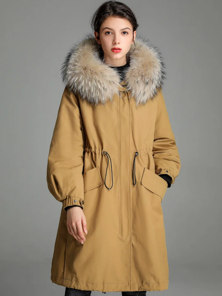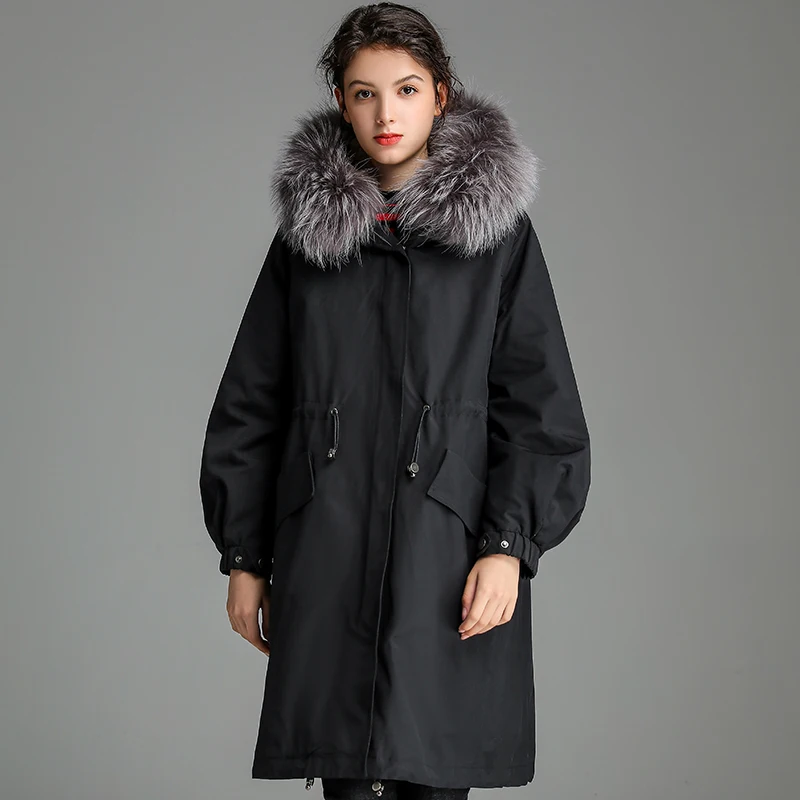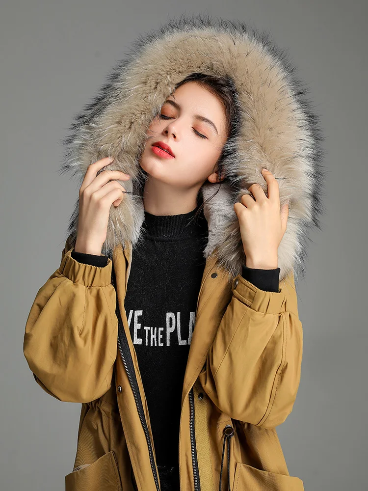 Product Name: 2020 Weibliche Parka Echt Kaninchen Winter Jacke Frauen WaschbÀren Pelz Kragen Warme Lange Mantel Manteau Femme Y253