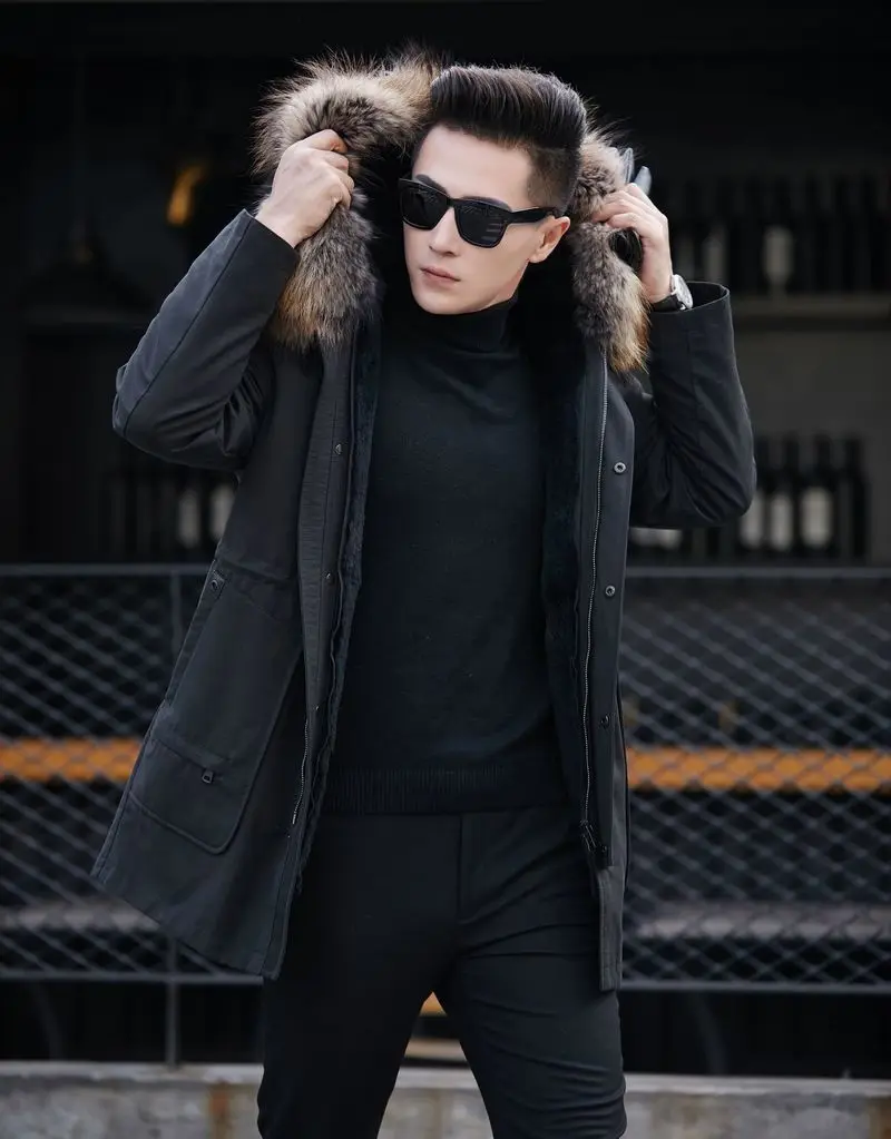 Product Name: Jacke Winter Männer Parka Echtpelz Mantel Männer Natürliche Kaninchen Pelz Liner Luxus Jacken Parkas Hombre 2020 81P82007 KJ2436
