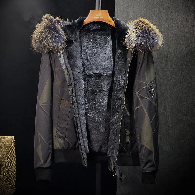 Product Name: Pelz Parka Echt Männer Winter Mantel Natürliche Kaninchen Pelz Liner Warme Jacke Waschbären Pelz Kragen Mit Kapuze Parkas Hombre 2020 52026