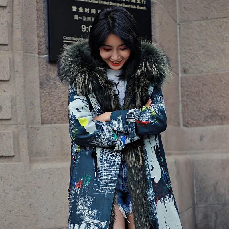 Special Offer Weiblichen Mantel Echt Kaninchen Liner Parka Winter Jacke Frauen WaschbÀren Pelz Kragen Warme Lange Jacken Manteau Femme MEIN Discount 30% Today!