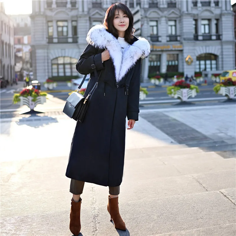 Product Name: Weiblichen Mantel Echt Kaninchen Liner Parka Winter Jacke Frauen WaschbÀren Pelz Kragen Warme Lange Jacken Manteau Femme MEIN