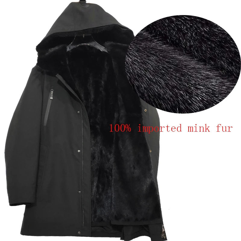Product Name: Abnehmbare 100% Nerz Liner überwindet Importiert Nerz Liner Lange Kappe Mit Echtpelz Mantel Zwei Tragen Hohe Qualität Männer Tragen