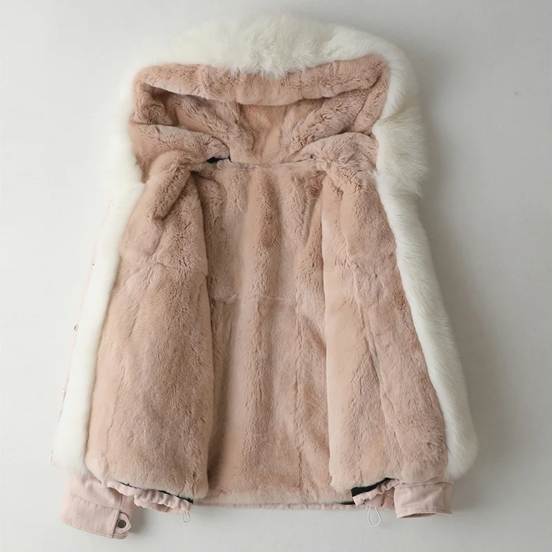 Product Name: AYUNSUE Parka Echtpelz Mantel Winter Mantel Frauen Kaninchen Pelz Liner Warme Jacke Frauen Fuchs Pelz Kragen Korean Outwear Manteau Femme MEIN