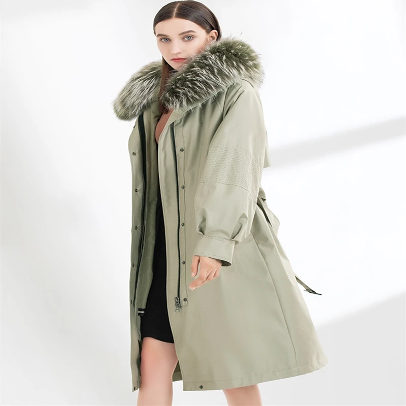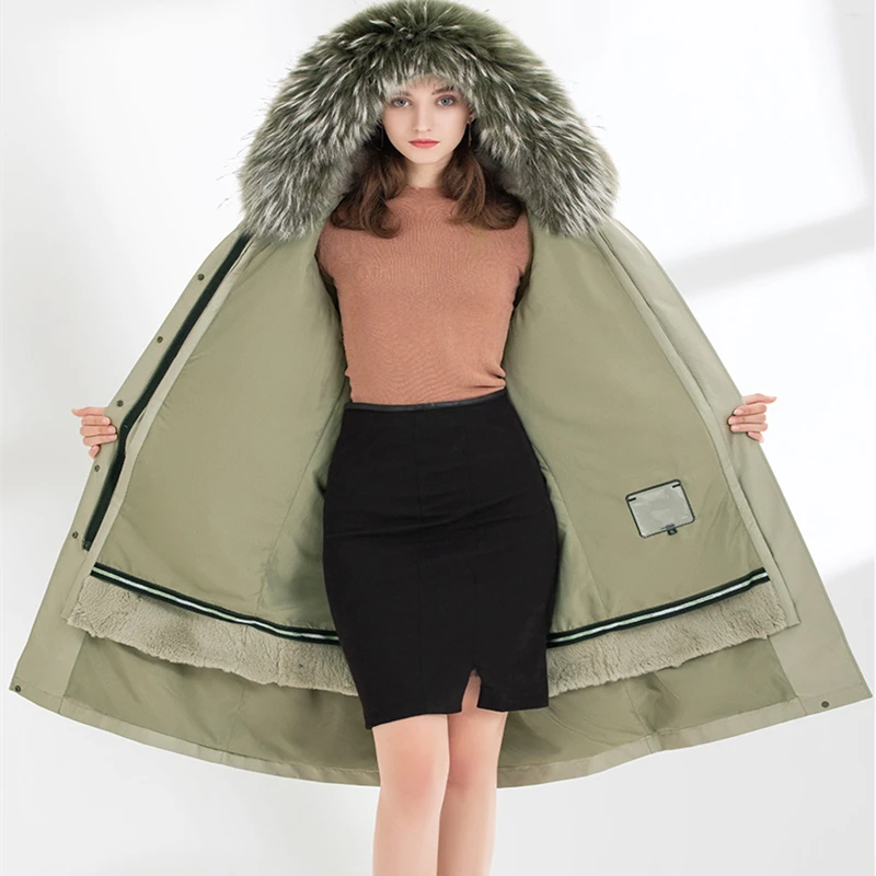 Product Name: Pai Überwinden Frauen Wärme 2020 Winter Neue Rex Kaninchen Liner Abnehmbarem Waschbär Kragen Mid-länge Dünne Fell Mantel Ja Schärpen