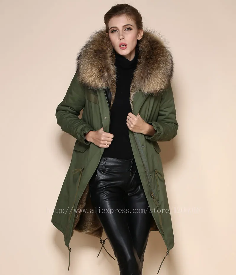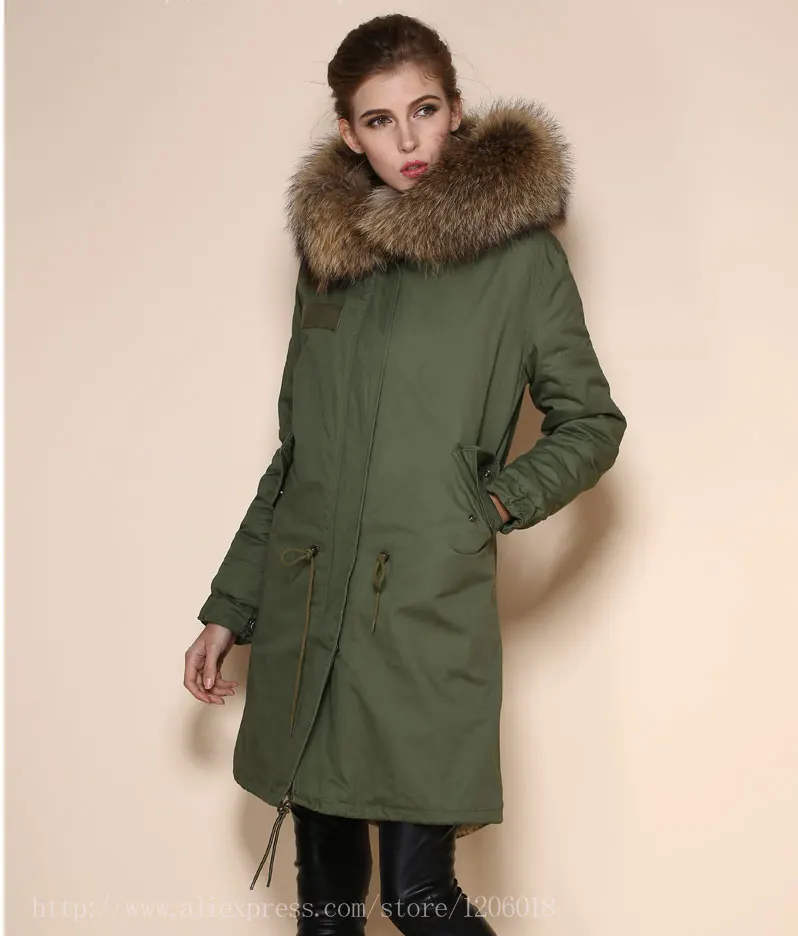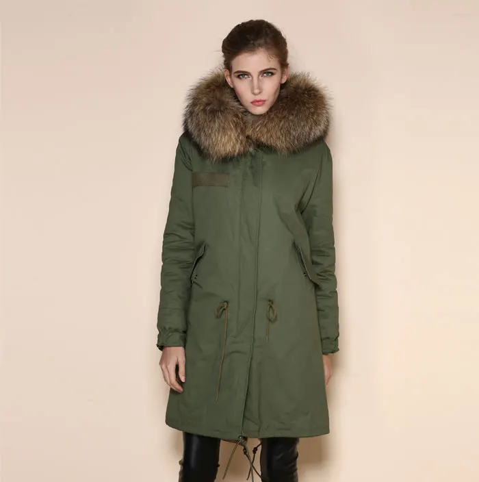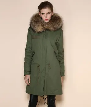 Product Name: Natürliche Farbe Faux Kaninchen Pelz Ling Waschbären Pelz Hoodies Lange Khkai Parka Für Weibliche