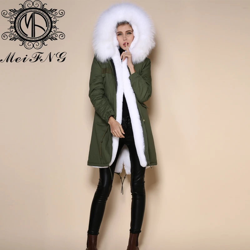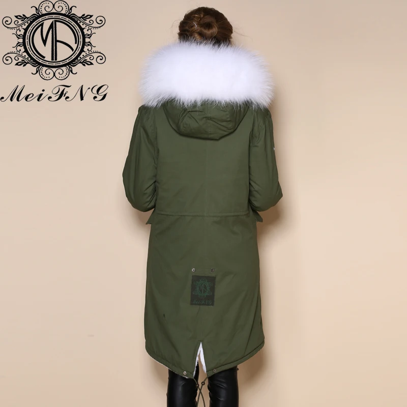Special Offer 2015 Neue Desgin Warme Winter Waschbär Fell Kapuze Parka Jacke Frauen Lange Günstige Pelz Mäntel Discount 0% Today!