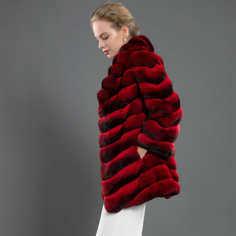 Product Name: Klassische Rex Kaninchen Pelz Jacke Frauen Mantel Winter Mode Anzug Kragen Outwear Hohe Qualität Chinchilla Farbe