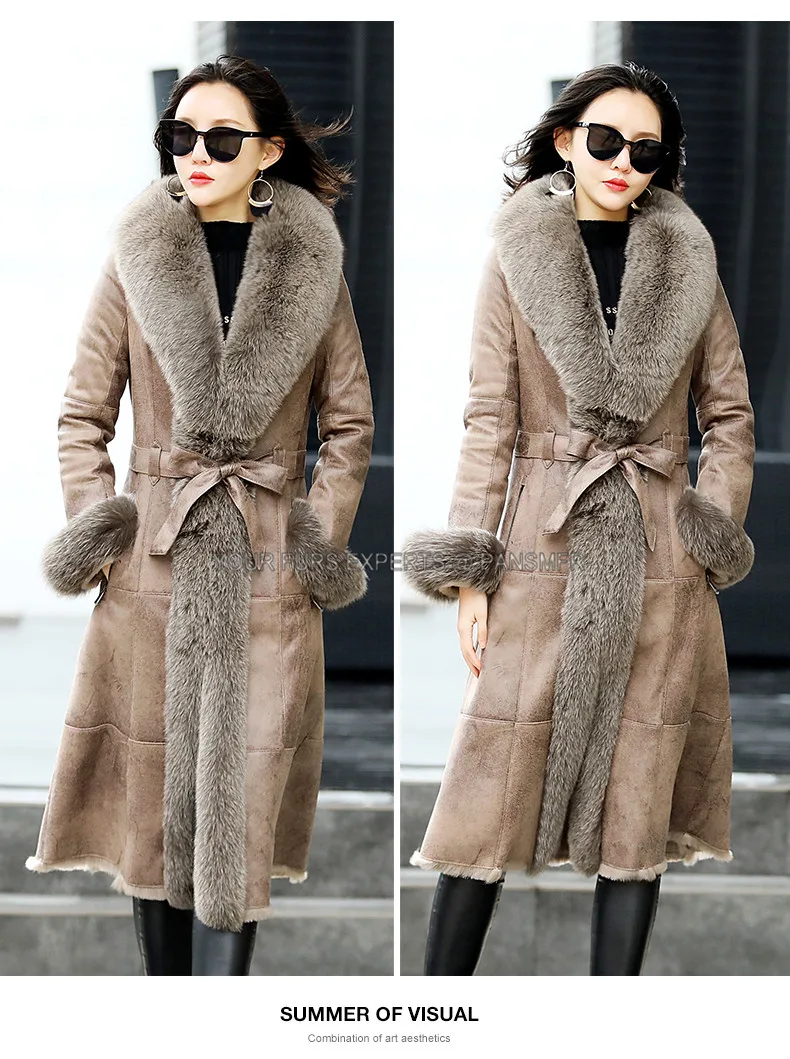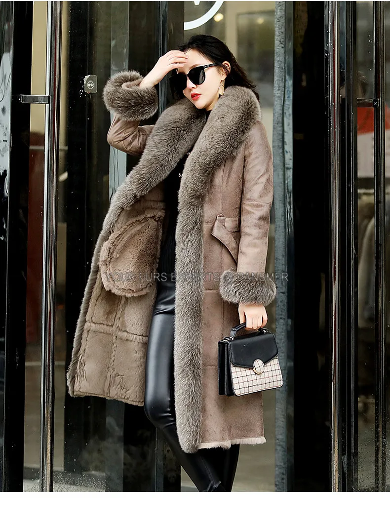 Product Name: Neue Ankunft Warme Kaninchen Pelz Leder Einem Stück Eleganten Damen Streetwear Winter Kleidung Frauen Oberbekleidung Pelz Kragen Heißer Frauen Mantel