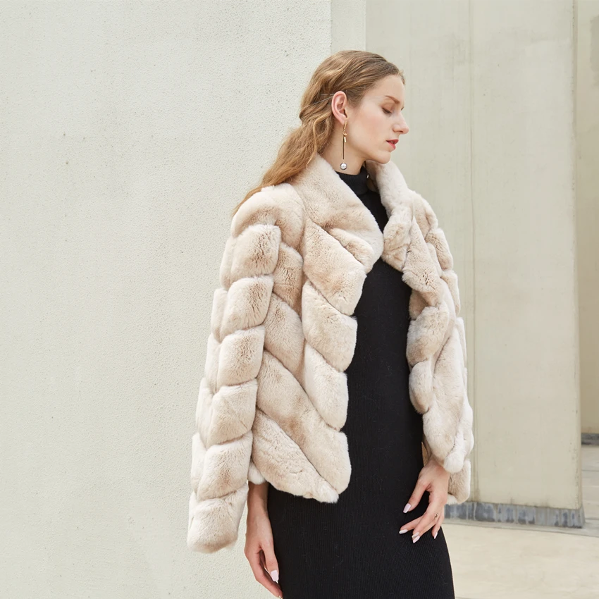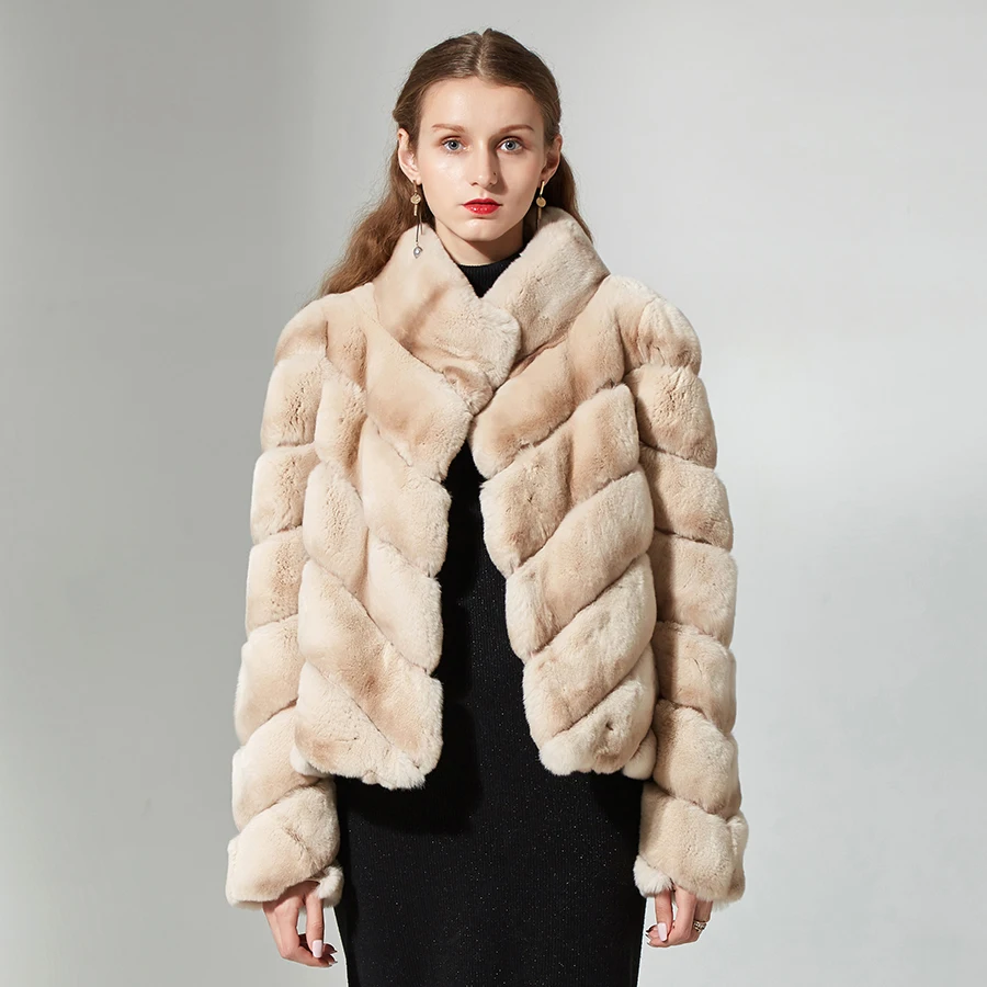 Special Offer Schlank Rex Kaninchen Pelz Mantel Jacke Frauen Winter Mode Kurze Beige Farbe Stehen Kragen Mantel Discount 50% Today!