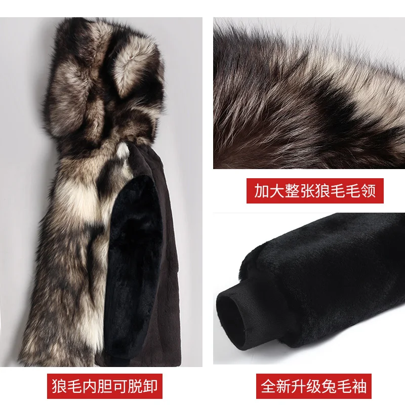 Product Name: 2020 Parka Echt Mantel Männer Winter Lange Jacke Natürliche Wolf Kragen Kaninchen Pelz Liner Warme Parkas Hombre 4674 B23019