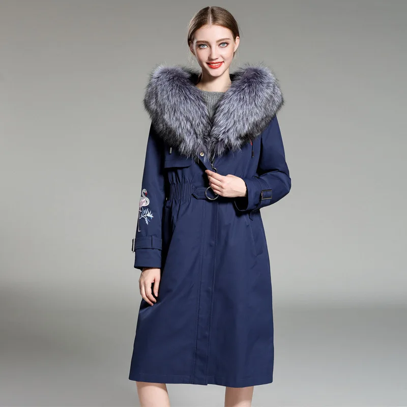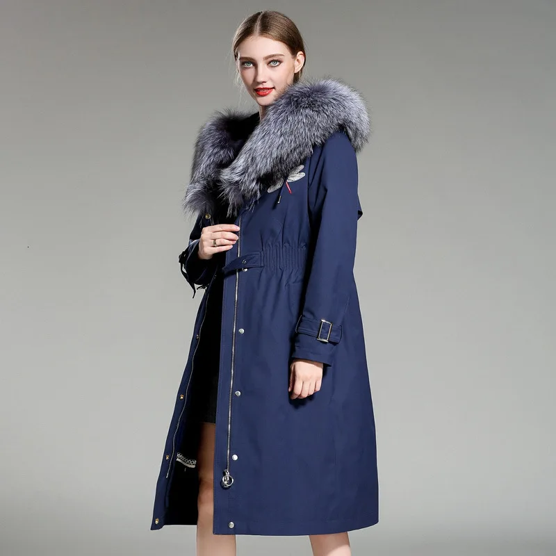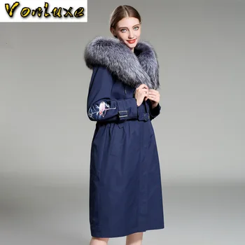 Product Name: 2020 Winter Jacke Frauen Lange Parka Echt Mantel Große Waschbären Pelz Kragen Kapuze Stickerei Parkas Natürliche Kaninchen Gefüttert Oberbekleidung