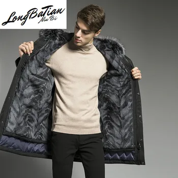 Product Name: Gans Unten Winter Jacke Männer Echt Mantel Natürliche Kaninchen Liner Fuchs Pelz Kragen Lange Warme Mäntel Parkas 2020 19P2134-2