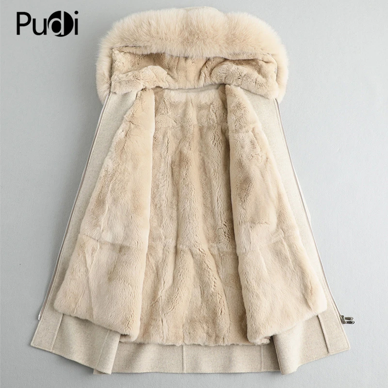 Special Offer PUDI A59767 Frauen Kaninchen Pelz Parka Mantel Dame Rex Pelz Futter Fuchs Pelz Kragen Freizeit Herbst/Winter Jacke Mäntel Graben Discount 20% Today!