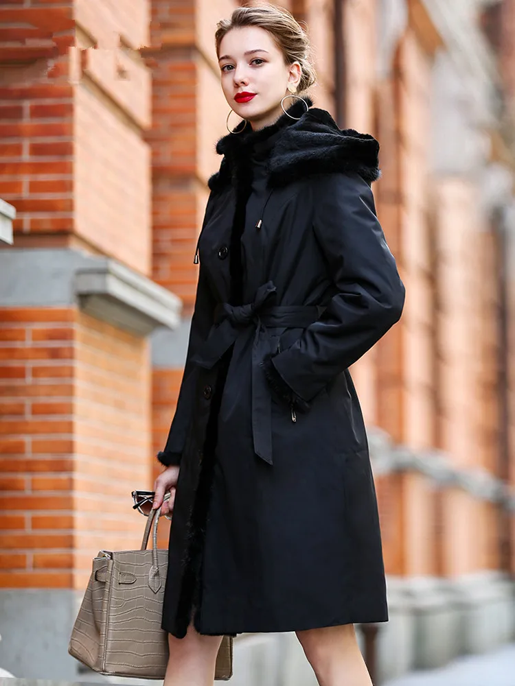 Product Name: Luxus Kaninchen Natürliche Liner Parka Winter Jacke Frauen Echt Nerz Pelz Kragen Langen Mantel Weibliche Parkas Plus Größe MY3703