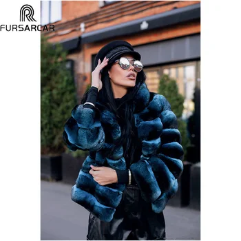 Product Name: FURSARCAR Casual Blau Rex Kaninchen Fell Mantel Mit Pelz Kragen Frauen Warme Winter Jacke Luxus Schlanke Natürliche Pelz Weibliche Outwear 2020