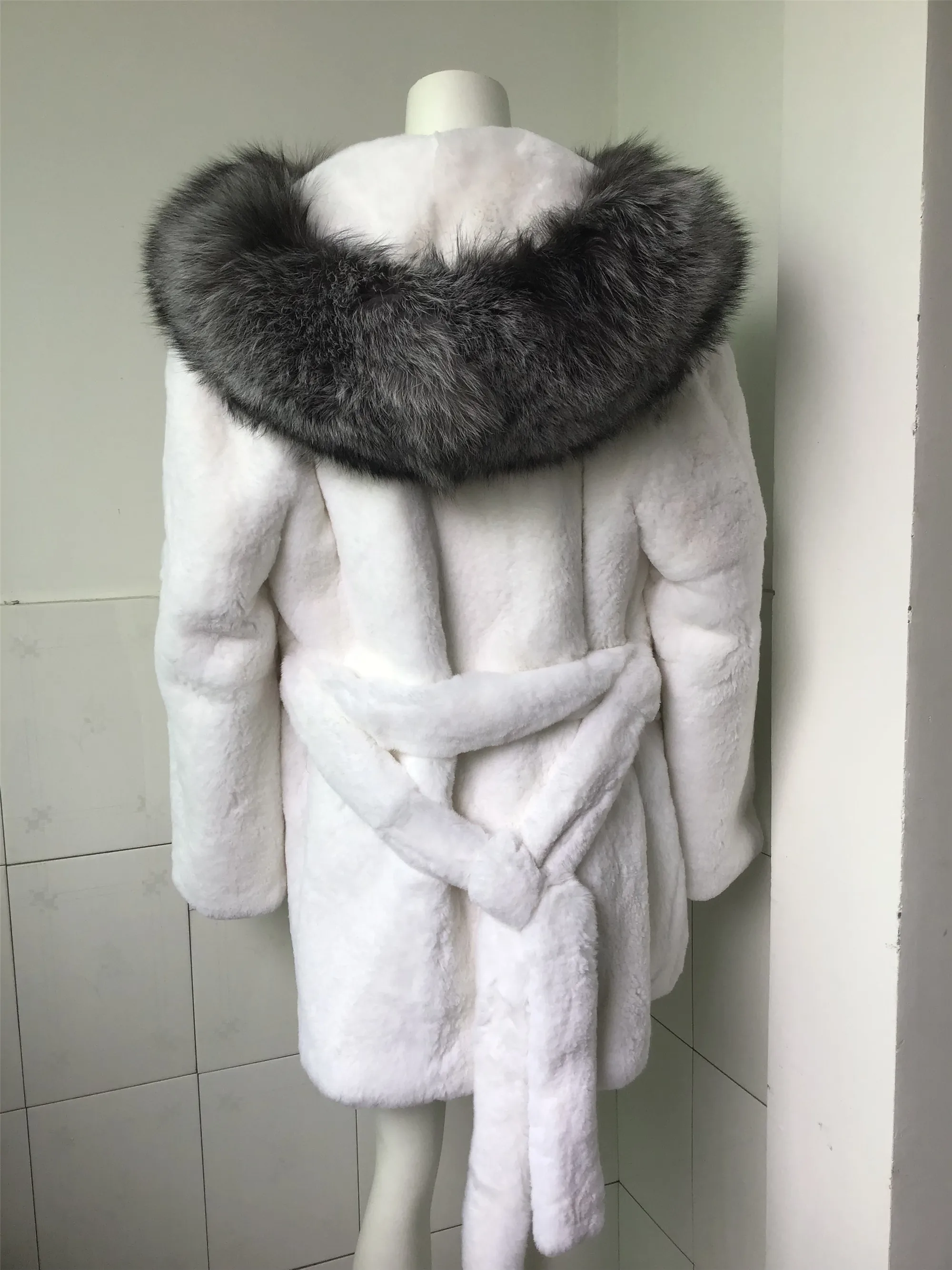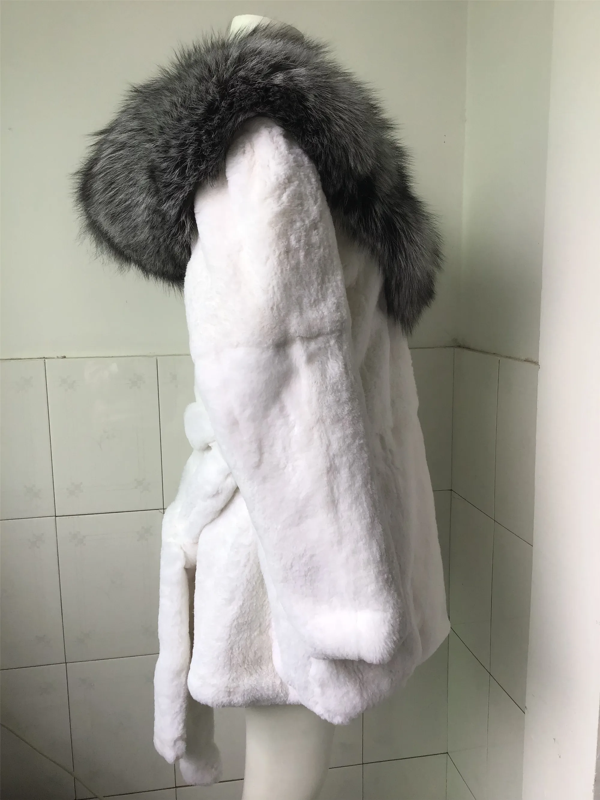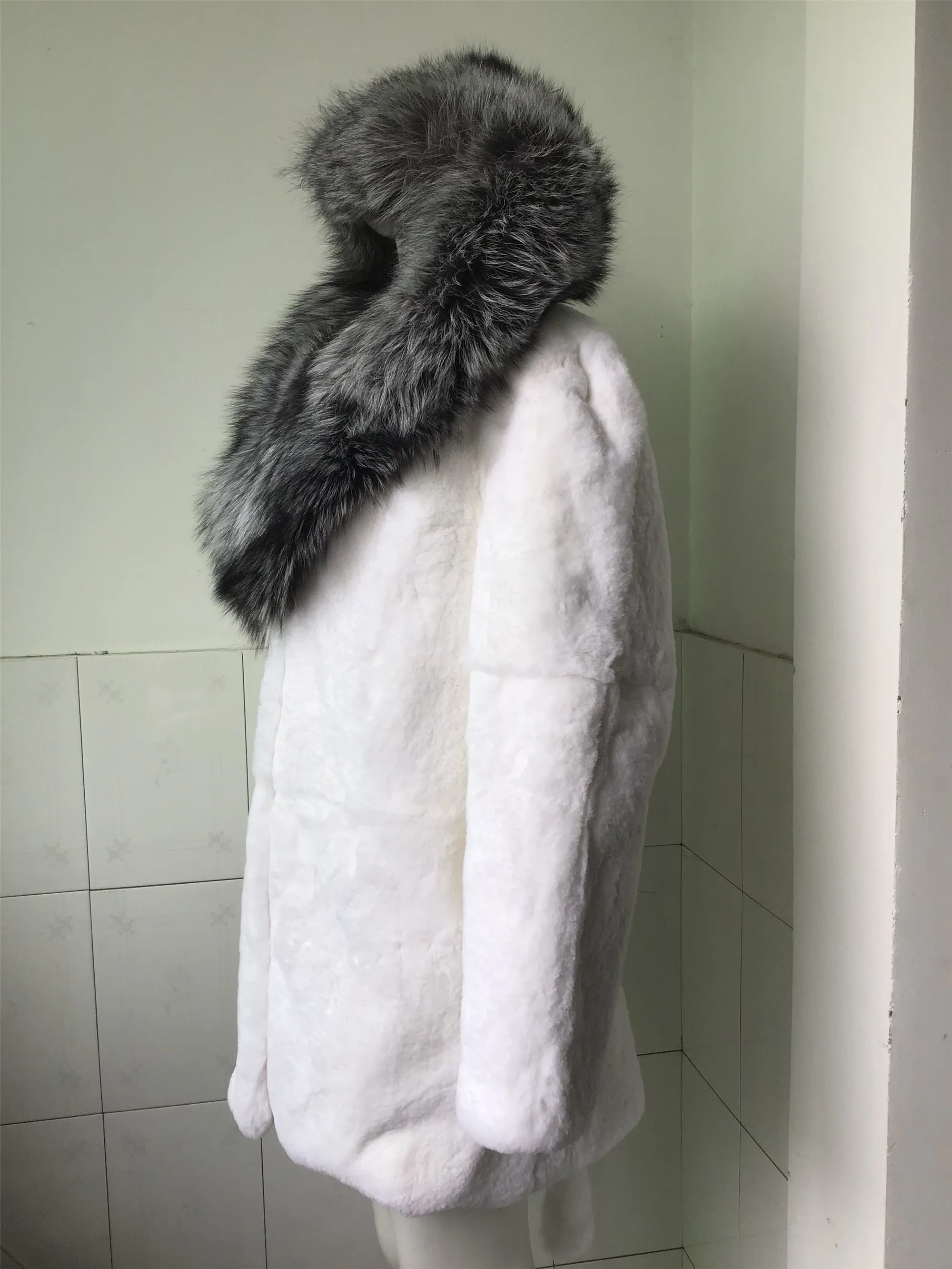 Special Offer 100cm Lange Silber Fuchs Pelz Mit Kapuze Mantel Imitation WeiĂ Nerz Entwicklung Rex Kaninchen Pelz Outwear Garment Mantel Blazer Parka Discount 34% Today!