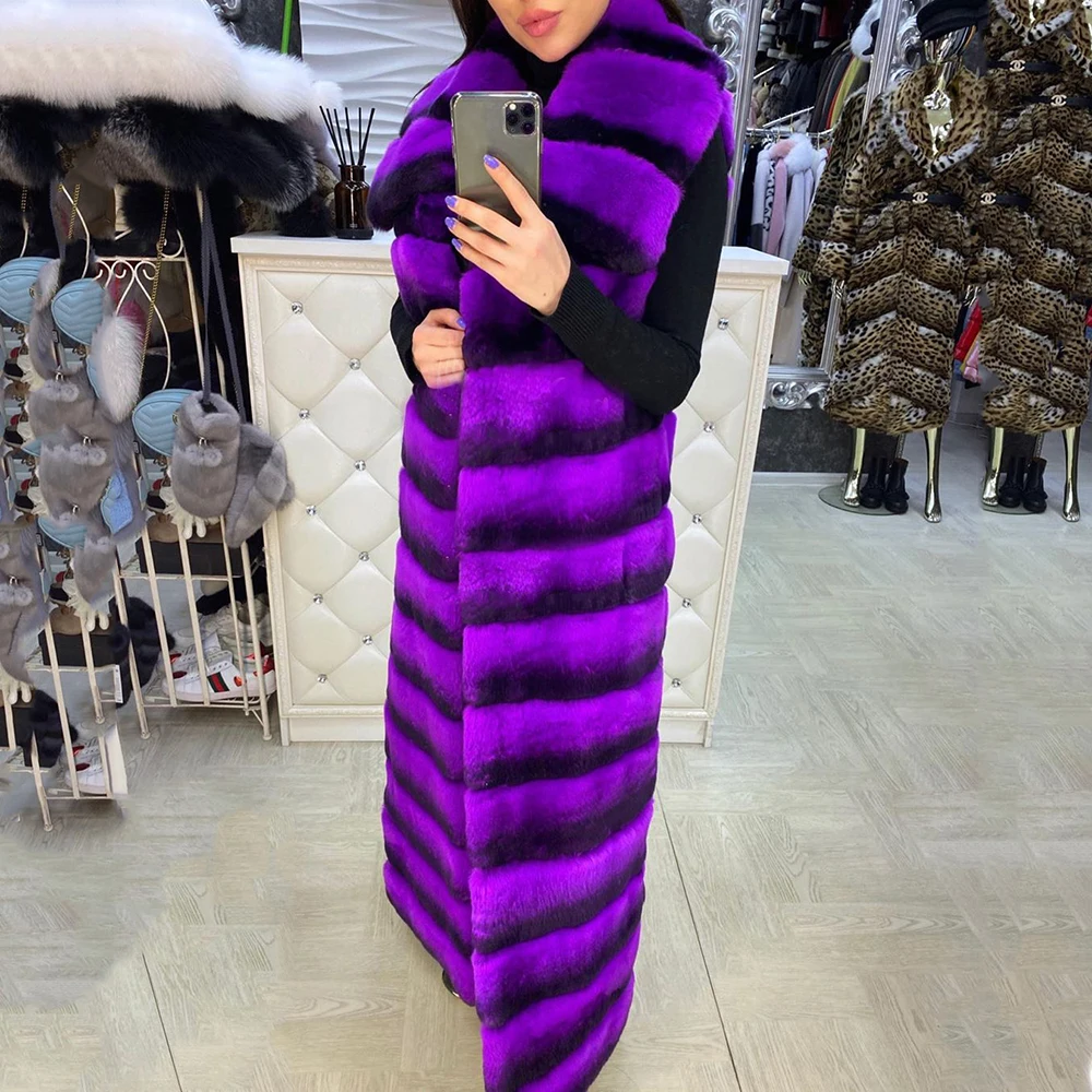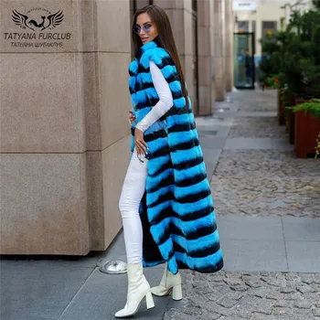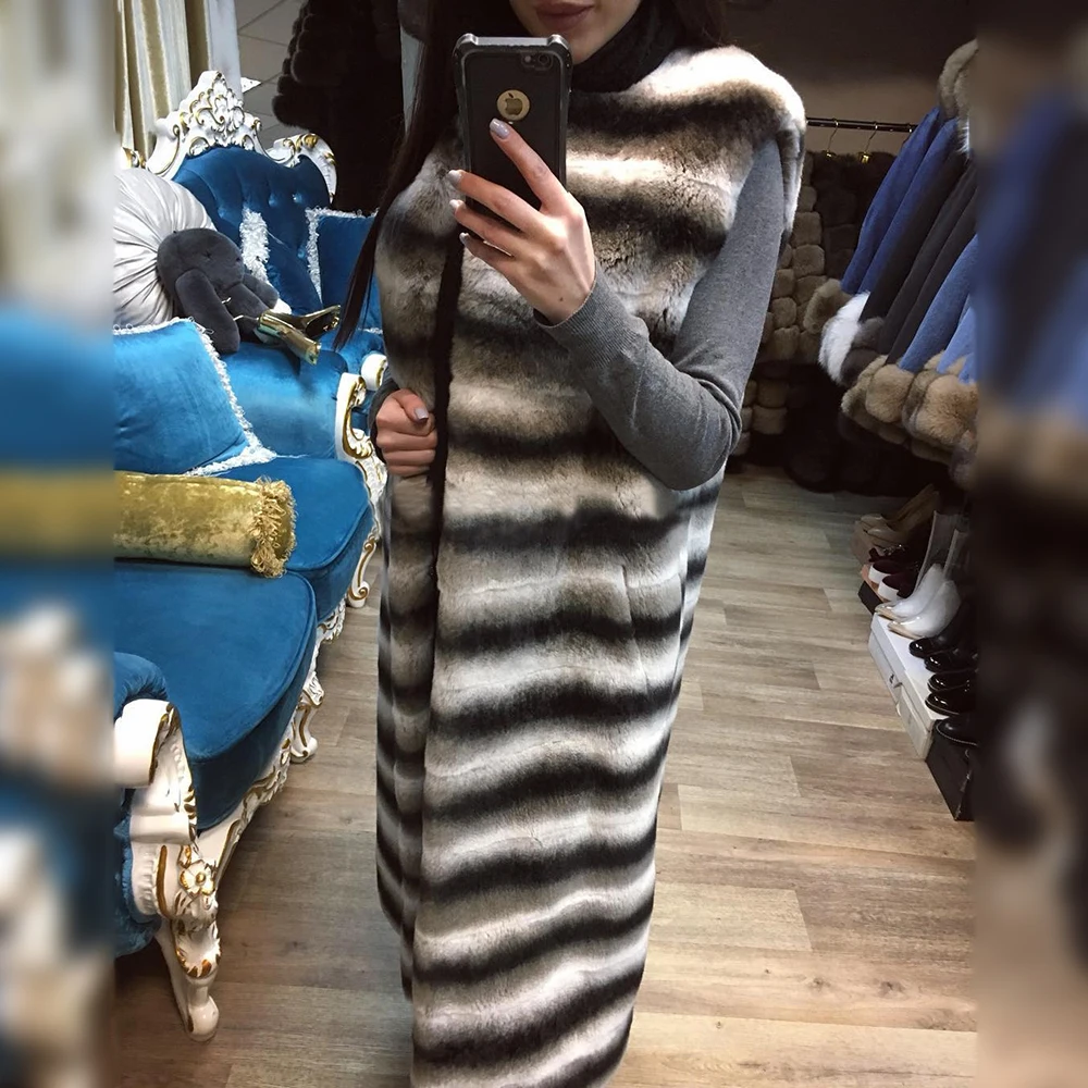Product Name: 120cm Lange Echt Rex Kaninchen Pelz Weste Frauen Mode Winter Luxus Mantel Weibliche Blau Chinchilla Farbe Rex Kaninchen Pelz Westen Frau