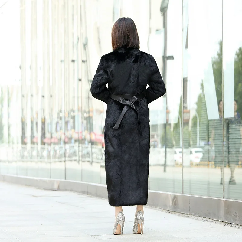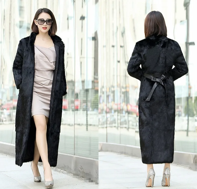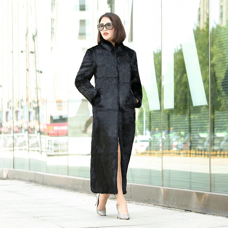 Product Name: Echten Kaninchenfell Mantel Jacke Stehkragen 130 CM Länge Herbst Winter Frauen Pelz Graben Oberbekleidung Mäntel Plus Größe VF4058