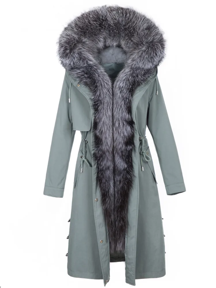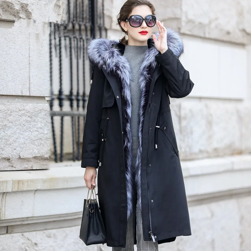 Product Name: AYUNSUE 2020 Parka Echtpelz Mantel Winter Jacke Frauen Kaninchen Pelz Liner Lange Jacken Für Frauen Fuchs Pelz Kragen Warme Mantel MY4200