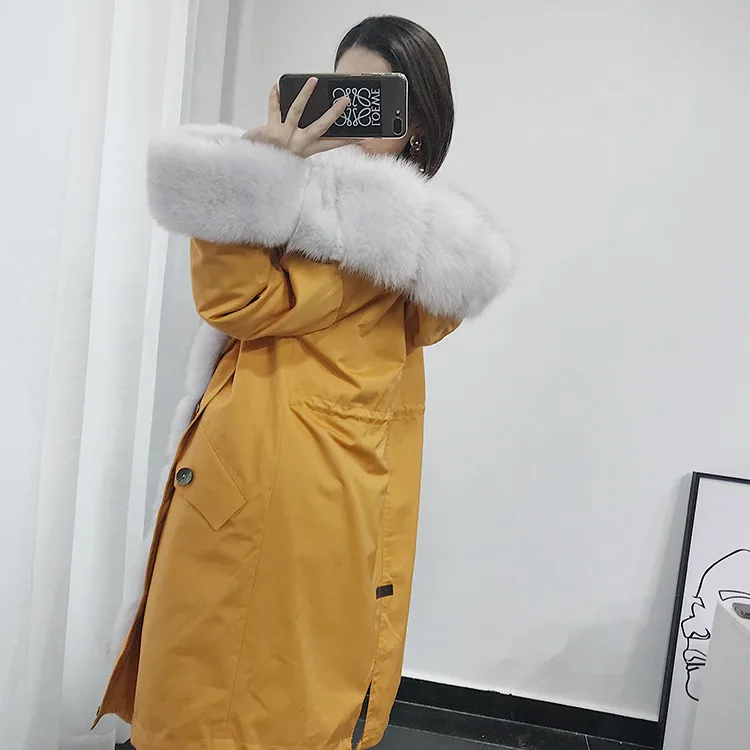 Product Name: Parka Echtpelz Mantel Winter Jacke Frauen Kaninchen Pelz Liner Langen Mantel Weibliche Fuchs Pelz Kragen Warme ĂbergroĂen Jacken MY4385