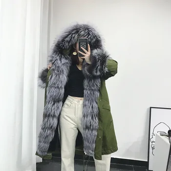 Special Offer Parka Echtpelz Mantel Winter Jacke Frauen Kaninchen Pelz Liner Langen Mantel Weibliche Fuchs Pelz Kragen Warme ĂbergroĂen Jacken MY4385 Discount 80% Today!