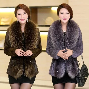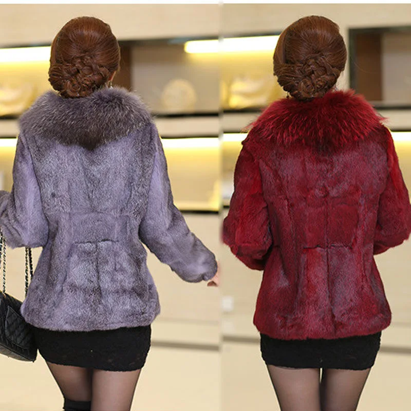 Product Name: Fell Natürliche 100% Kaninchen Winter Frau Mäntel Waschbären Pelz Kragen Fashion Echten Pelz Mäntel Frauen Echt Kaninchen Pelz Mantel