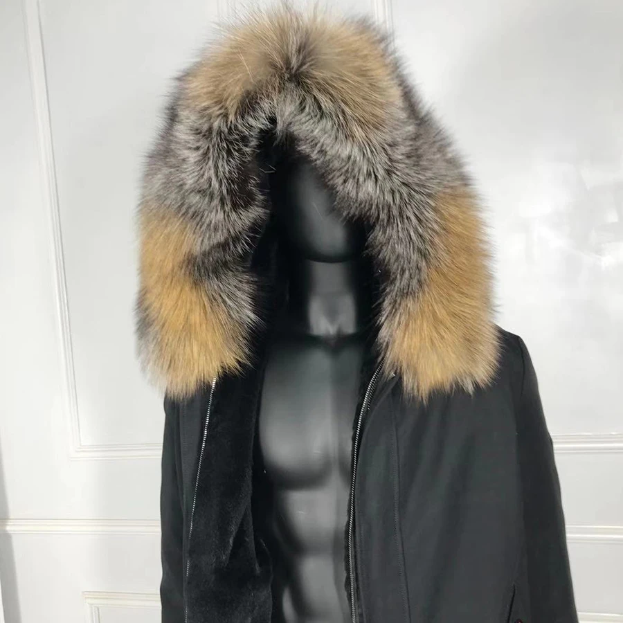 Product Name: Männer Parka Winter Jacken Natürliche Kaninchen Pelz Liner Mäntel Luxus Mit Kapuze Warme Pelz Parkas