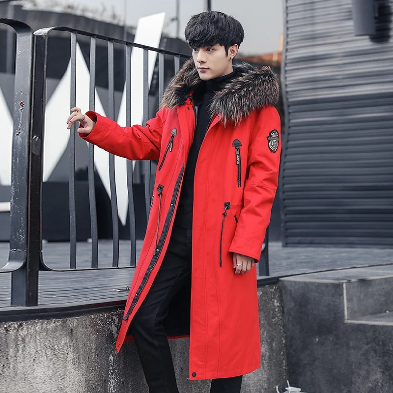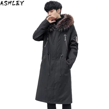 Product Name: Echt Lange Parka, Herren Mantel, Wintermantel, Natürliche Kaninchen Futter, Waschbären Neck, Parks