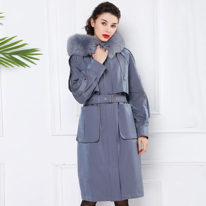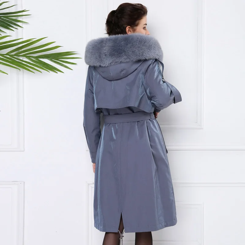 Product Name: Big Natural Fox Collar Hooded Long Parka Jacket Women Real Rabbit Fur Inside Coat Elegant Lady Winter Warm Outwear Plus Size