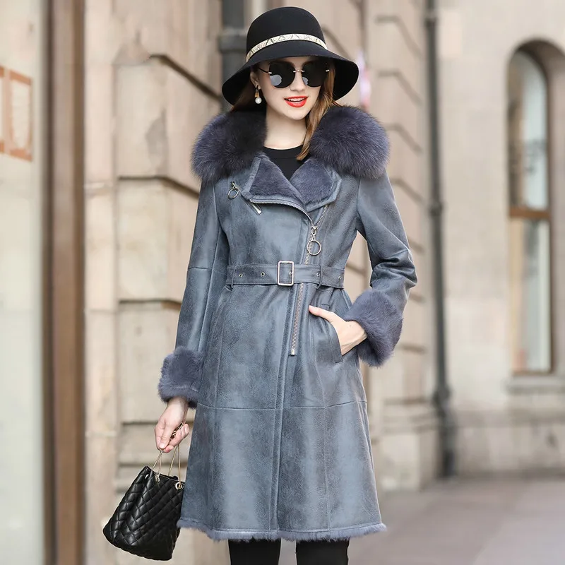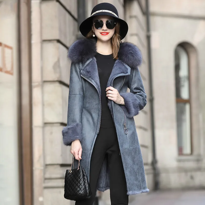 Special Offer Natürliche Echt Pelzmantel Fuchs Pelz Kragen Doppel-konfrontiert Kaninchen Fell Echtes Leder Jacke Tops Herbst Winter Mantel Frauen Kleidung 2020 Discount 90% Today!