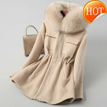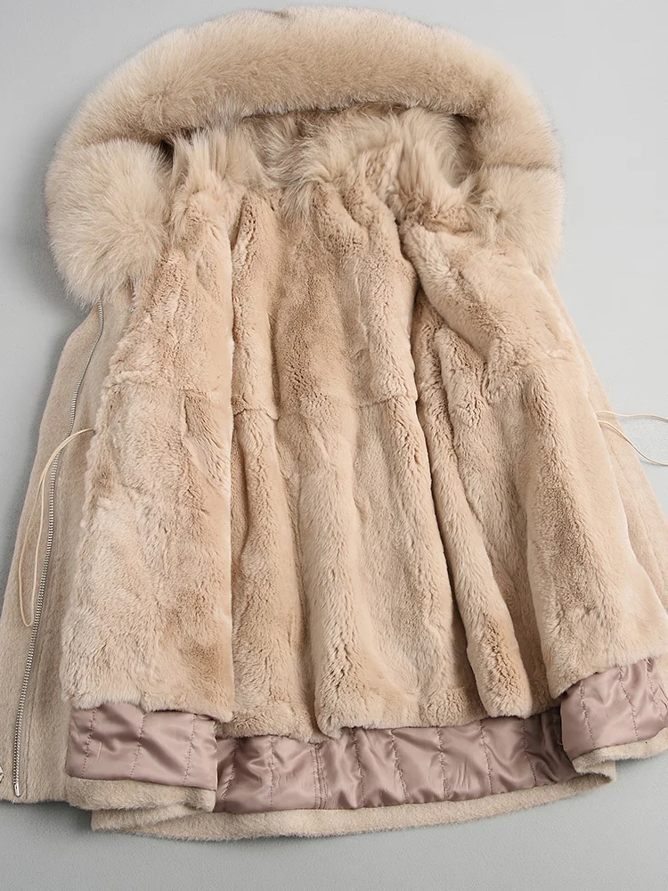 Product Name: Echtpelz 2020 Mantel Frauen Winter Jacke Mit Kapuze Natürliche Kaninchen Pelz Liner Fuchs Pelz Kragen Warme Mäntel Und Jacken Frauen KQN18141