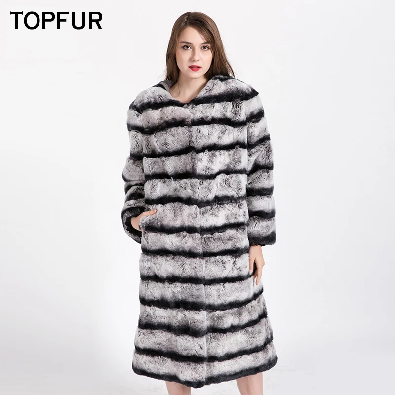 Special Offer TOPFUR Neue Ankunft Natürliche Rex Kaninchen Pelzmantel Frauen Ganz Pelt 110 CM Lange Real Rex Kaninchen Fell Weibliche Outwear Heißer Verkauf 1616 Discount 23% Today!