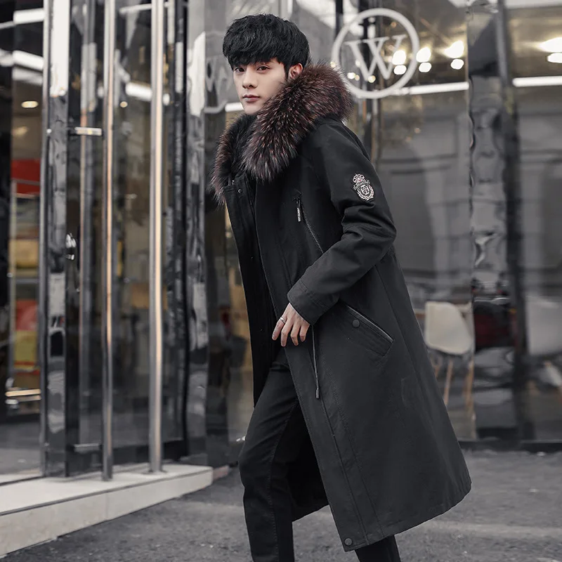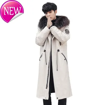 Product Name: Echt Lange Parka, Herren Mantel, Wintermantel, Natürliche Kaninchen Futter, Waschbären Neck, Parks