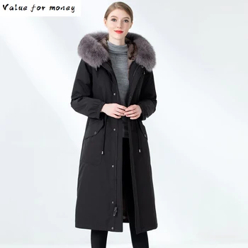 Product Name: Fur Real Parka Winter Jacke Frauen Kleidung Natur Fuchs Kaninchen Pelz Liner Langen Mantel Weibliche Fuchs Pelz Kragen Warme Parkas Hiver SYHS29