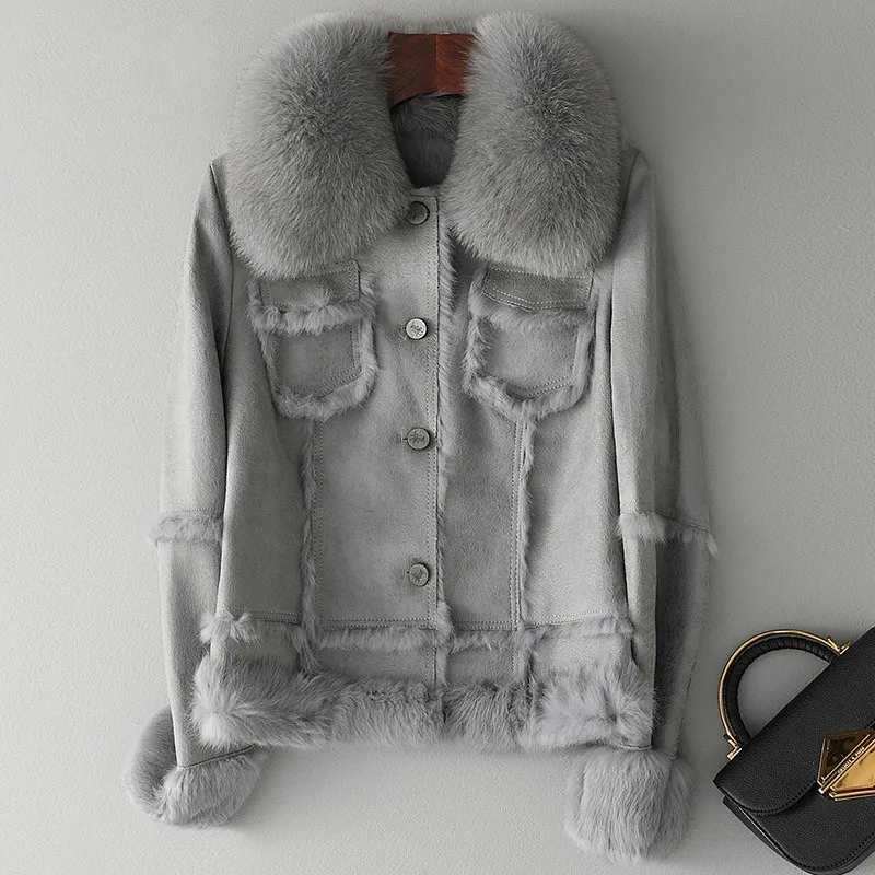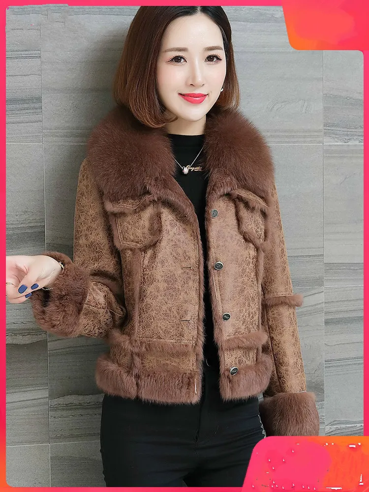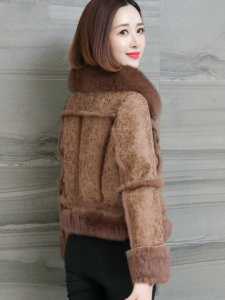 Product Name: Pelzmantel Echt Frauen Winter Jacke Natürliche Rex Kaninchen Pelz Mäntel Und Jacken Fuchs Pelz Kragen Kurze Manteau Femme ZKY9621 KJ5656