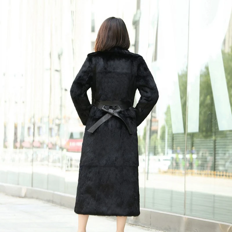Product Name: Echten Kaninchenfell Mantel Jacke Umlegekragen 125 CM Länge Herbst Winter Frauen Pelz Graben Oberbekleidung Mäntel Plus Größe VF4060