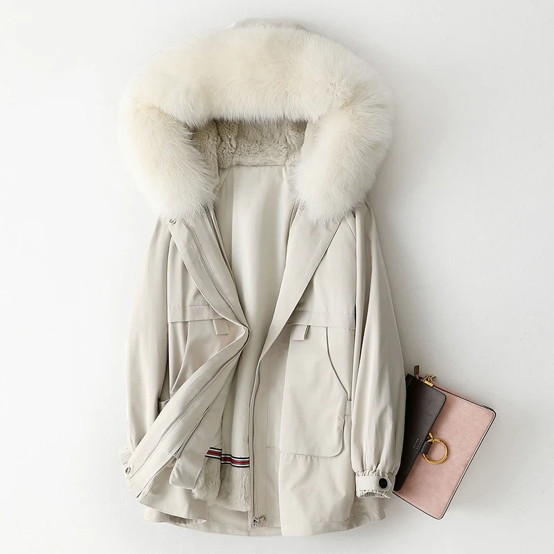 Special Offer Winter Parka Mantel Jacke Fuchs Pelz Hoody Kaninchen Fell Futter Frauen Warme Oberbekleidung Mäntel LF2096 Discount 47% Today!