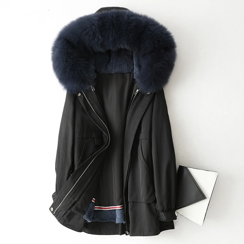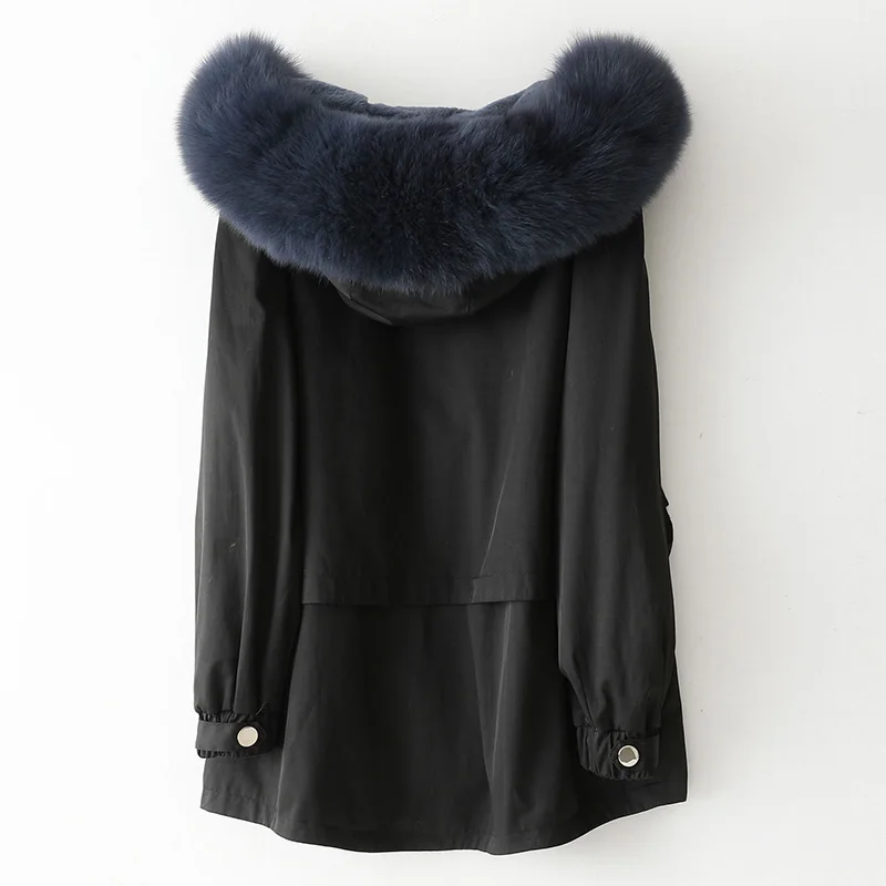 Product Name: Winter Parka Mantel Jacke Fuchs Pelz Hoody Kaninchen Fell Futter Frauen Warme Oberbekleidung Mäntel LF2096