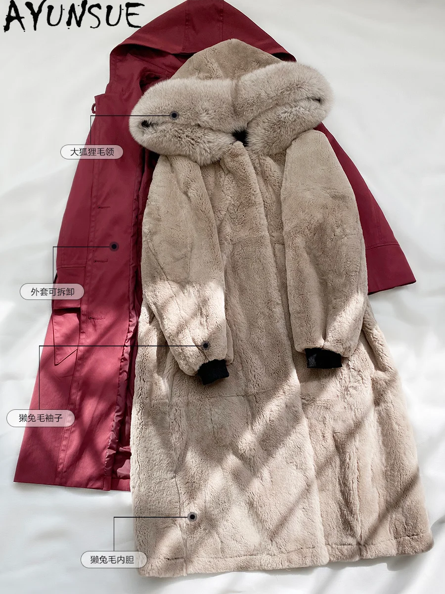 Special Offer AYUNSUE Frau Parkas Echt Pelzmantel Frauen Winter Jacke Fuchs Pelz Mit Kapuze Natürliche Rex Kaninchen Pelz Mäntel Für Frauen Kleidung 2020 18179 Discount 50% Today!