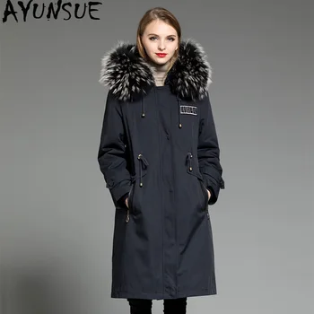 Special Offer AYUNSUE Echtpelz Parka Natürliche Kaninchen Pelz Liner Langen Graben Mantel 2020 Winter Jacke Frauen Waschbären Pelz Kragen Luxus Parkas MEIN Discount 50% Today!