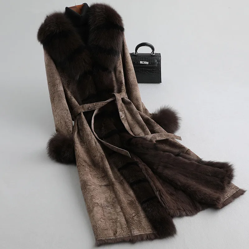 Special Offer AYUNSUE Luxus Doppel Konfrontiert Pelzmantel Weibliche Natürliche Kaninchen Pelz Mäntel Winter Mantel Frauen Fuchs Pelz Kragen Echt Leder Jacke 4xl MEIN Discount 50% Today!
