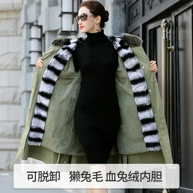 Product Name: 2020 Real Coat Female Natural Rabbit Liner Parka Winter Jacket Women Fox Raccoon Fur Collar Long Jackets MY3890