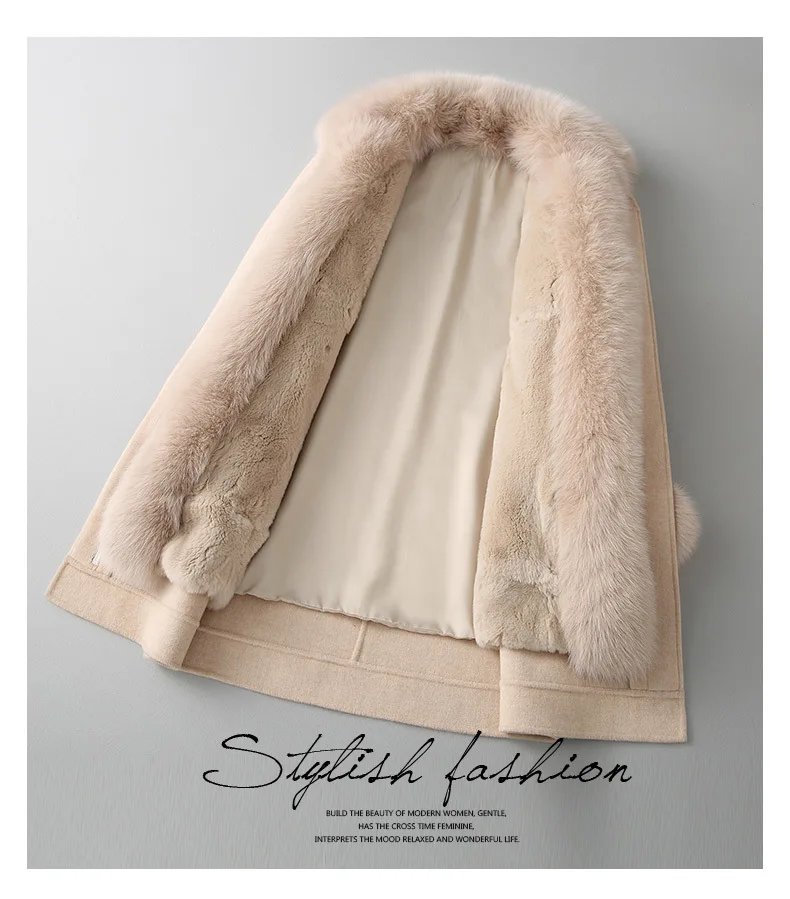 Special Offer Frauen Weibliche Kaninchen Liner Wolle Mantel Winter Jacke Frauen Fuchs Pelz Kragen Woolen Mäntel Warme Parka MY4228 Discount 80% Today!